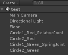 示例:红色球使用了Relative Joint,绿色球使用了Spring Joint