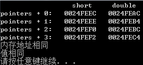 //short数组的指针+1,指针会往后移两个字节,因为1个short占两个字节。