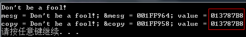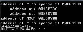 1、pt和MSG地址相同,说明pt指向静态存储区的I'm special