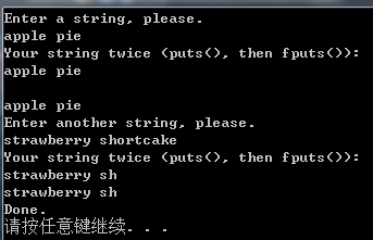 //对于输出,fputs()把字符发送给另一个缓冲区,当发送换行符时,