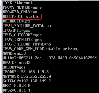 vi /etc/sysconfig/network-scripts/ifcfg-ens33