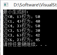 printf("边(%d, %d)权为:%d\n", closest[k], k, min);