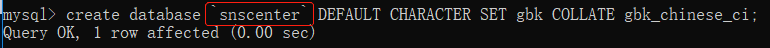 创建数据库: create database `snscenter` DEFAULT CHARACTER SET gbk COLLATE gbk_chinese_ci;
