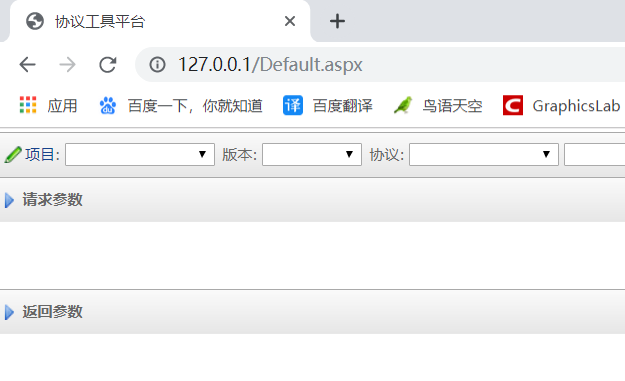 然后再浏览器中输入http://127.0.0.1/Default.aspx打开协议工具平台