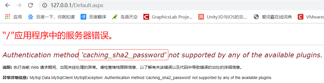 Authentication method 'caching_sha2_password' not supported by any of the available plugins.