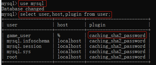 修改game_user用户名的plugin为mysql_native_password