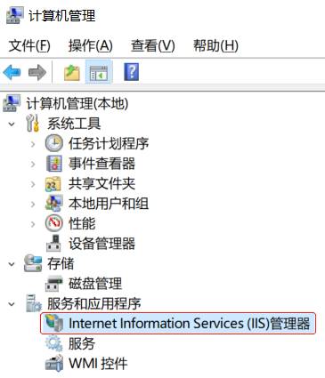 安装完成后,在我的电脑点右键->管理->服务和应用程序->Internet Information Services(IIS)管理器