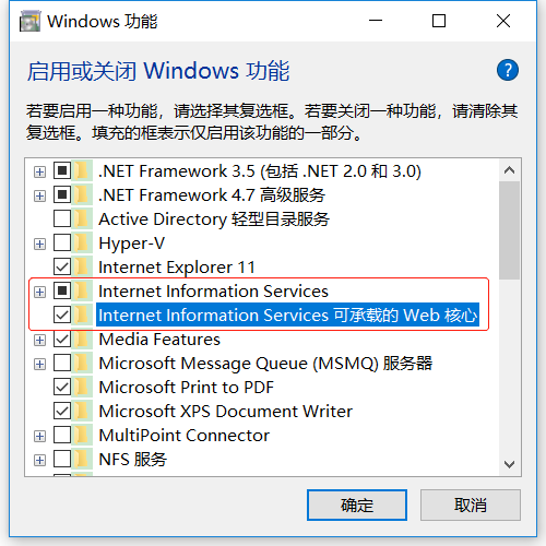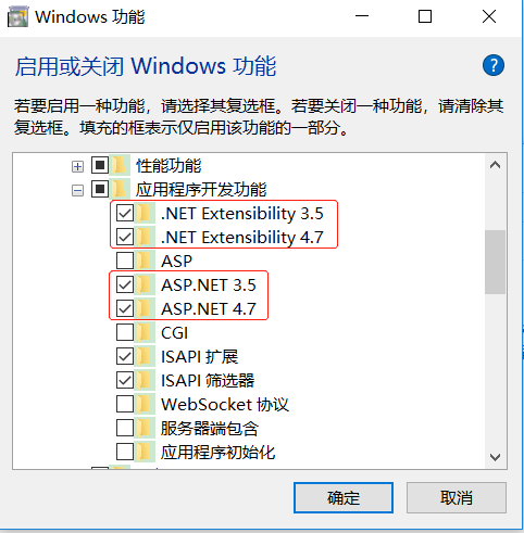[Internet Information Services->万维网服务->应用程序开发功能]