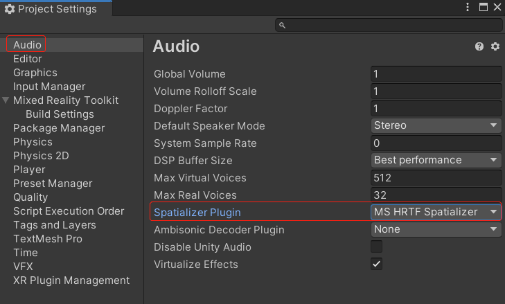 ● 设置音频空间定位器(MS HRTF Spatializer)