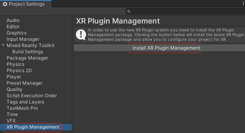 ● 安装 XR插件管理(XR Plugin Management) (新版 XR 设置)