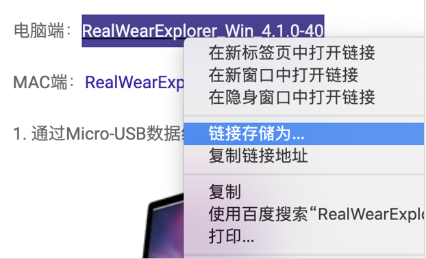 该软件为电脑端应用,需要使用电脑下载安装,使用它可方便您在电脑上同屏眼镜系统画面、鼠标键盘操作眼镜系统内容及软件安装。