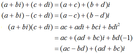 复数对(a, b)定义了数a+bi,i是所谓的虚数,满足i2=-1,a称作实部,b称作虚部。任意实数k都能表示为复数(k, 0)=k+0i。