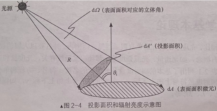 $$ I=\frac{dΦ}{dΩ} $$辐射亮度(radiance)定义为辐射表面在其单位投影面积的单位立体角内发出的辐射能量。如图所示: