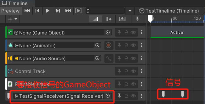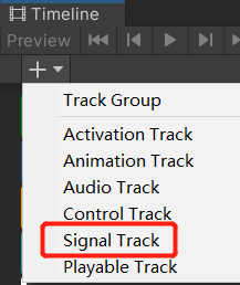 点击Timeline窗口上的“+”按钮,创建Signal Track。并将希望接收信号的GameObject拖到Signal Track上。