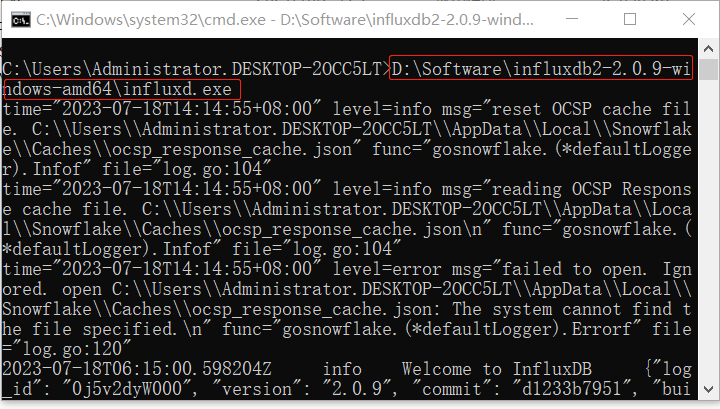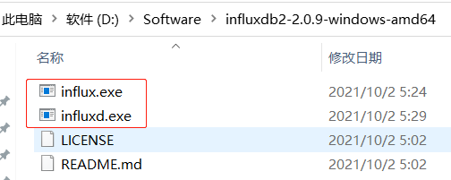 示例:在cmd中输入 >D:\Software\influxdb2-2.0.9-windows-amd64\influxd.exe (这是作者的路径)