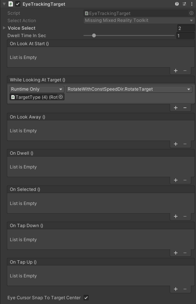 - OnDwell: 当注视时间大于Dwell Time In Sec秒时触发