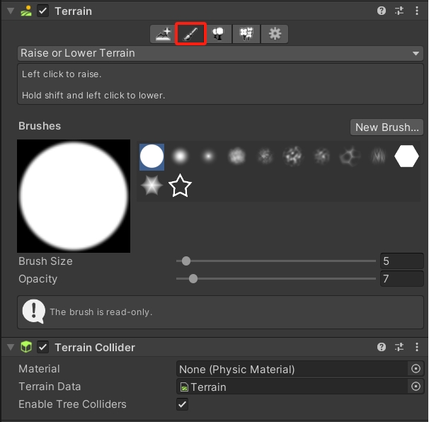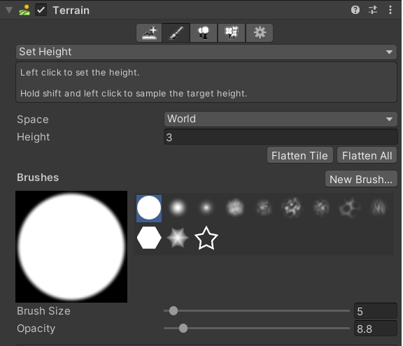 Opacity: 画笔强度。值越大,对地形的改变越大。