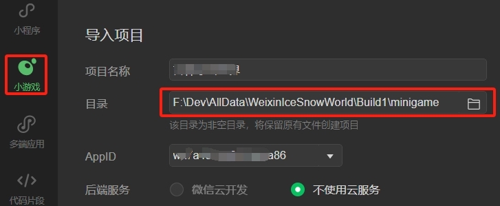 找到Unity导出工程中的minigame目录,使用微信开发者工具导入。