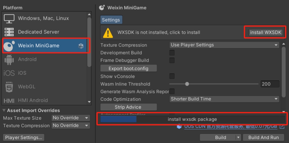 InstantGame 窗口中的其它配置,请参考 团结引擎手册-微信小游戏-快速上手。