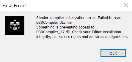 启动工程时报 D3DCompiler_47.dll 无法访问。