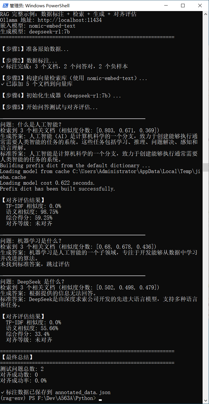 RAG 数据标注和对齐完整示例(使用 Ollama nomic-embed-text + deepseek-r1:7b)