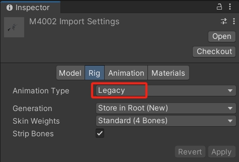 如果是模型文件(*.fbx),则需要将 Animation Type 设置为 Legacy。