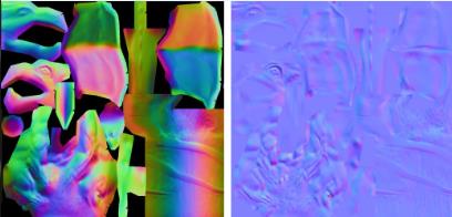 上图 左边: 模型空间下的法线纹理 右边: 切线空间下的法线纹理