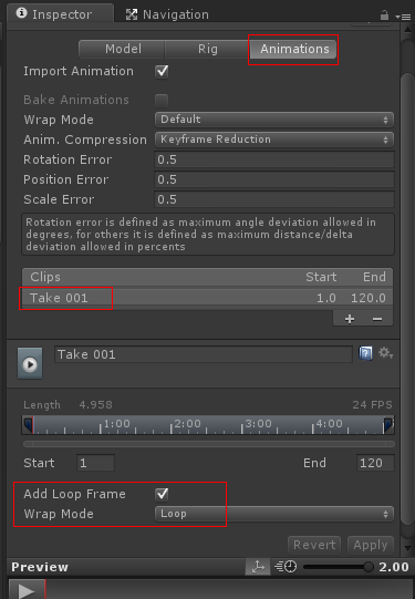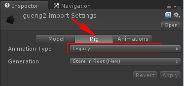 (7) 选中gueng2.fbx,设置动画类型为Legacy