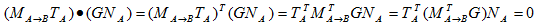 那么,应该使用哪个矩阵来变换法线呢?我们可以由数学约束条件来推出这个矩阵。我们知道同一个顶点的切线TA和法线NA必须满足垂直条件,即TA●NA=0。给定变换矩阵MA-B,我们已经知道TB=MA->BTA。我们现在想要找到一个矩阵G来变换法线NA,使得变换后的法线仍然与切线垂直。即
