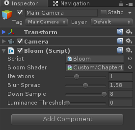 Bloom特效是游戏中常见的一种屏幕效果。这种特效可以模拟真实摄像机的一种图像效果,它让画面中较亮的区域“扩散”到周围的区域中,造成一种朦胧的效果。