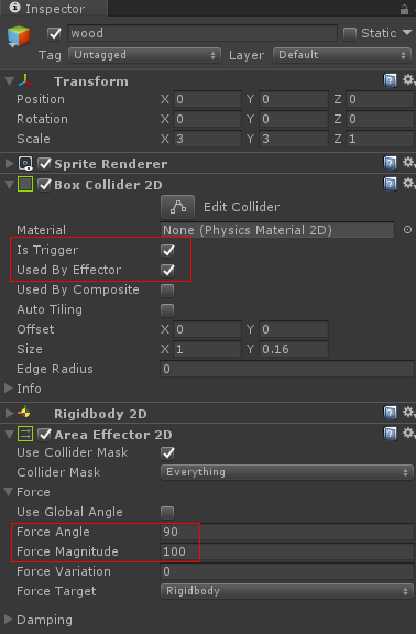 示例一:小球进入木头区域后会受到一个向上的力,重力又会使小球掉下来。