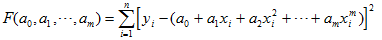 下面以多项式模式为例,介绍一下使用最小二乘法进行曲线拟合的完事步骤。假设选择的拟合多项式模式是: