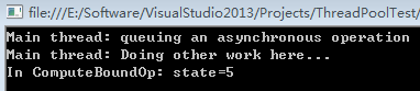 Console.WriteLine("In ComputeBoundOp: state={0}", state);