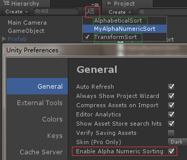 AlphabeticalSort、TransformSort为Unity内置排序规则。MyAlphaNumericSort为自定义的排序规则