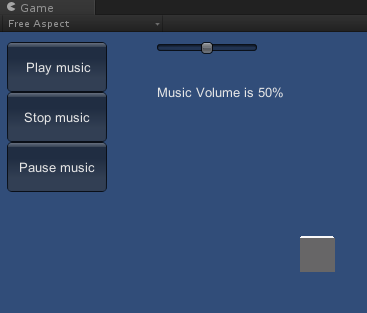 musicVolume = GUI.HorizontalSlider (new Rect(160, 10, 100, 50), musicVolume, 0.0F, 1.0F);