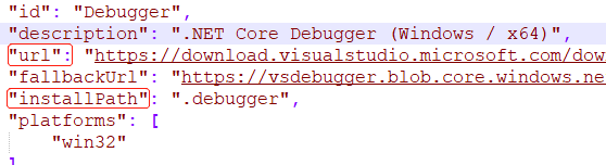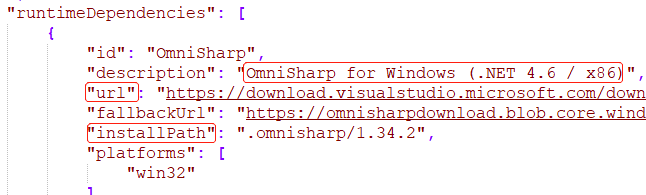 在.vscode\extendions\ms-vscode.csharp-1.21.2\package.json文件中可以找到插件的zip文件下载地址