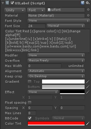 NGUI支持的BBCode