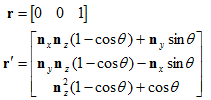 让我们导出绕轴n旋转角度θ的矩阵。也就是说,我们想得到满足下面条件的矩阵