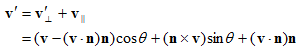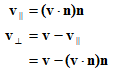 - v∥是v平行于n的分量。另一种说法就是v∥是v在n上的投影,用(v●n)n计算。