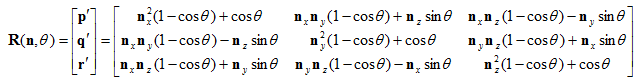 这里讨论绕通过原点的任意轴。用单位向量n描述旋转轴,用θ描述旋转量。