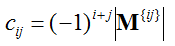 如上,用记法cij表示M的第i行,第j列元素的代数余子式。注意余子式是一个矩阵,而代数余子式是一个标量。代数余子式计算式中的项(-1)(i+j)有以棋盘形式使矩阵的代数余子式每隔一个为负的效果:
