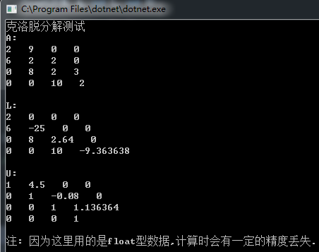 克洛脱(Crout)LU分解原理参见 克洛脱(Crout)矩阵分解——LU分解