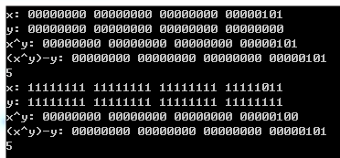 Console.WriteLine("(x^y)-y: " + IntToBinary((x ^ y)-y));