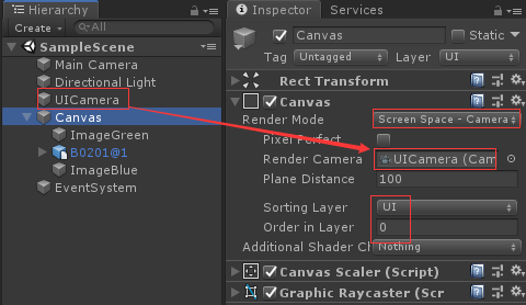 4. 调整三个Image的层级(子组件会自动显示在父组件的上面)