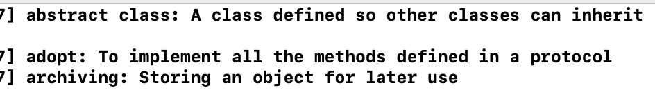 glossary[@"adopt"] = @"To implement all the methods defined in a protocol";