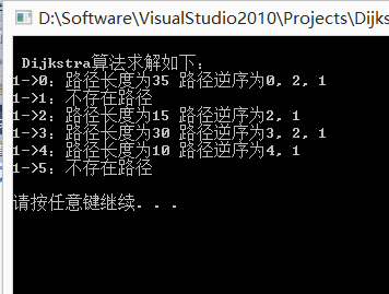 printf("\n Dijkstra算法求解如下: