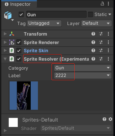 通过切换 Sprite Resolver 的 Category 和 Label 可以切换2D骨骼动画的单个部件皮肤。