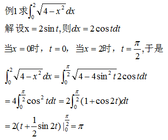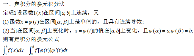 在应用定积分换元公式计算定积分时,选代换x=ρ(t)与不定积分选代换是类似的,而与不定积分换元法不同的是:定积分换元后必须相应地要改变新积分的上、下限(这里α不一定小于β),然后只要计算出新的积分的数值就行了,不需要再换回原来的变量。