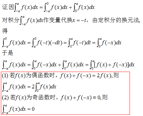 关于奇、偶函数在对称区间[-a, a]上的积分性质: