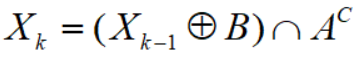 非边界元素均标为 0,下述过程将把这个区域用 1 来填充:设 B 为对称结构元素,在图像4中,从区
